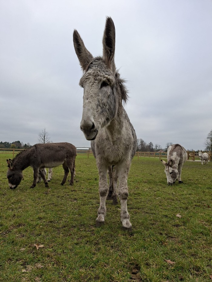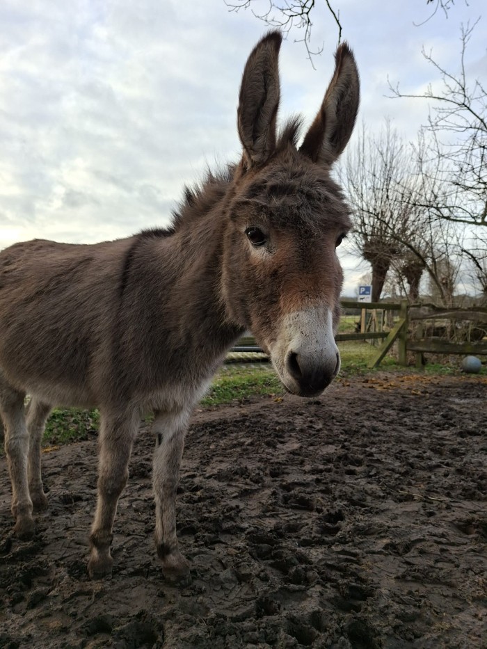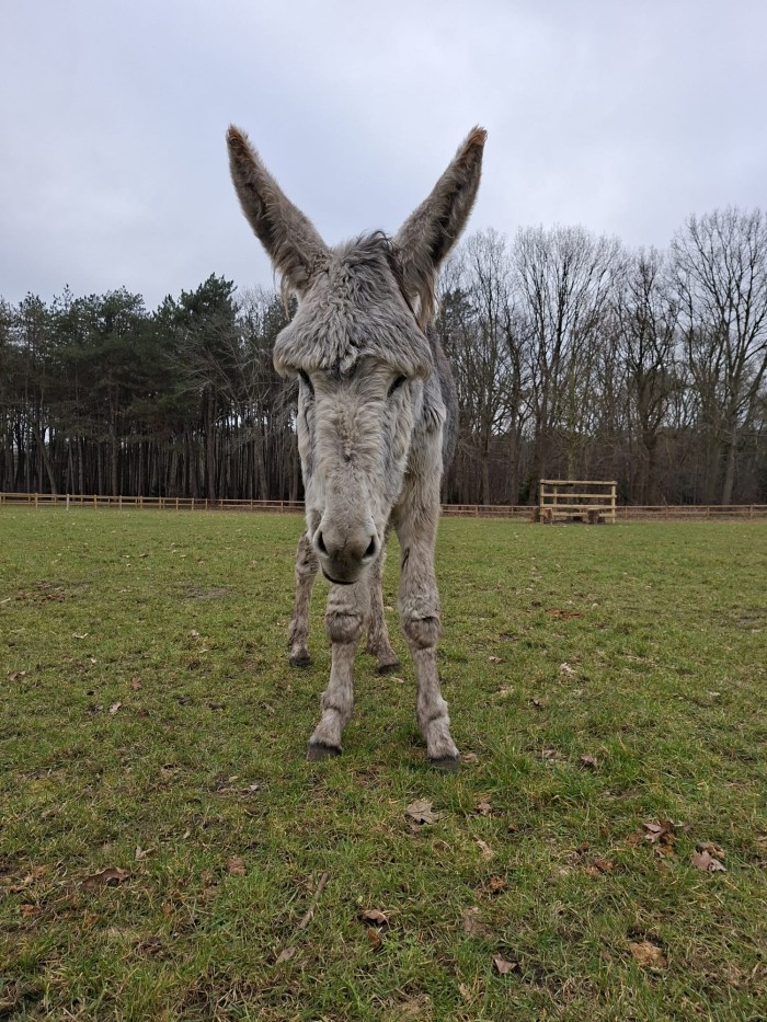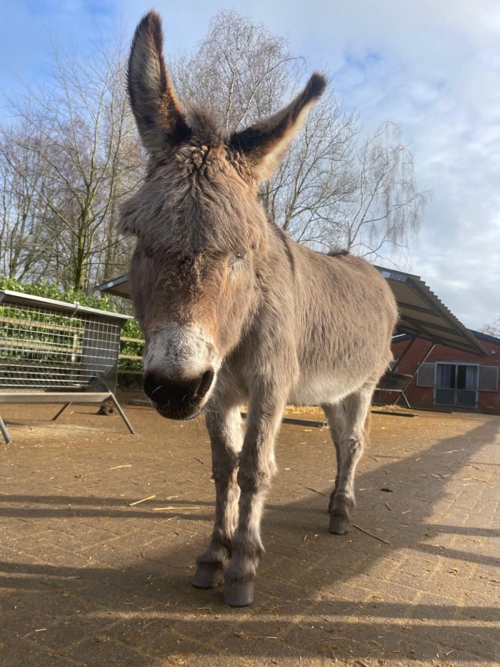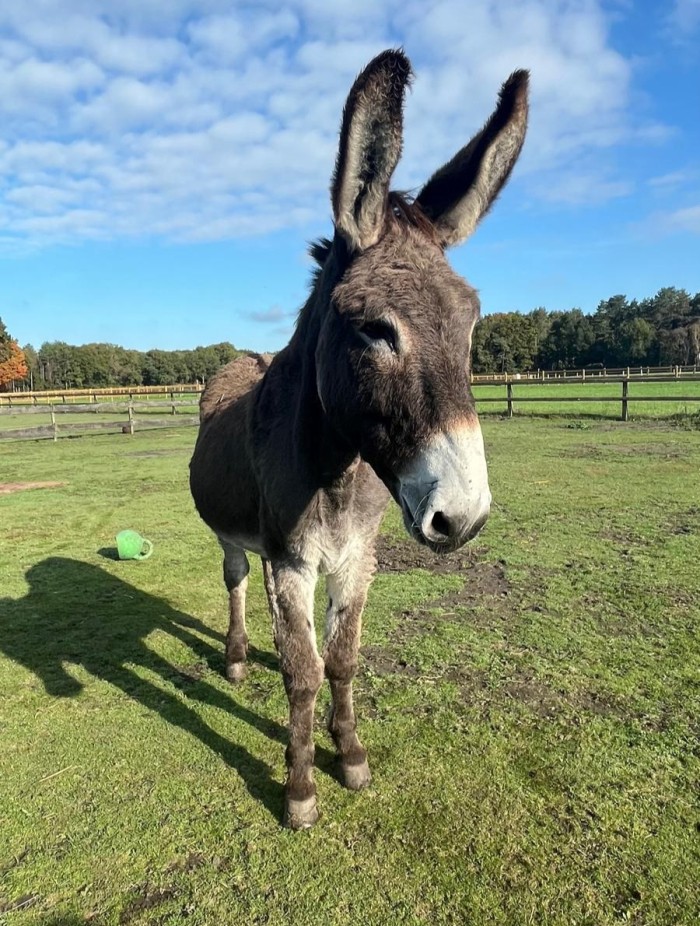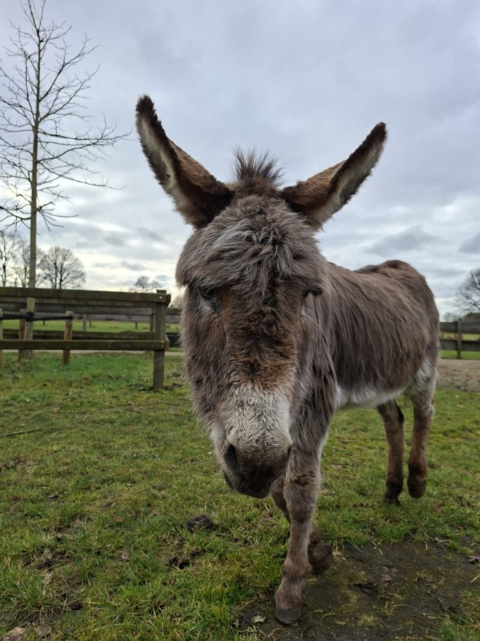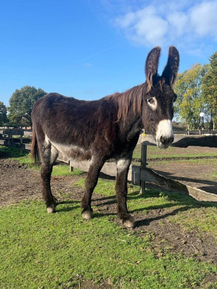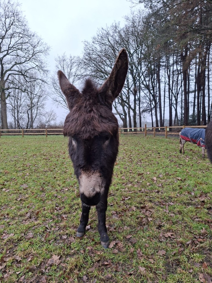 Onyx is wat afstandelijk naar mensen, maar altijd nieuwsgierig en lief naar kinderen. Hij begrijpt eigenlijk niet goed wat mensen van hem verwachten en is daardoor wat onzeker. Wandelen vindt hij helemaal het einde, maar hij wil onderweg altijd wel even een paar jolige ezelcapriolen uithalen. Hij is bijzonder slim en kan zelfs de zware staldeuren openmaken. Onyx is "hoofd welkomstcomité". Als er een nieuwe ezel bij ons aankomt, is hij degene die de nieuwkomer op zijn gemak stelt. Hij zál en moet meteen vriendjes worden.